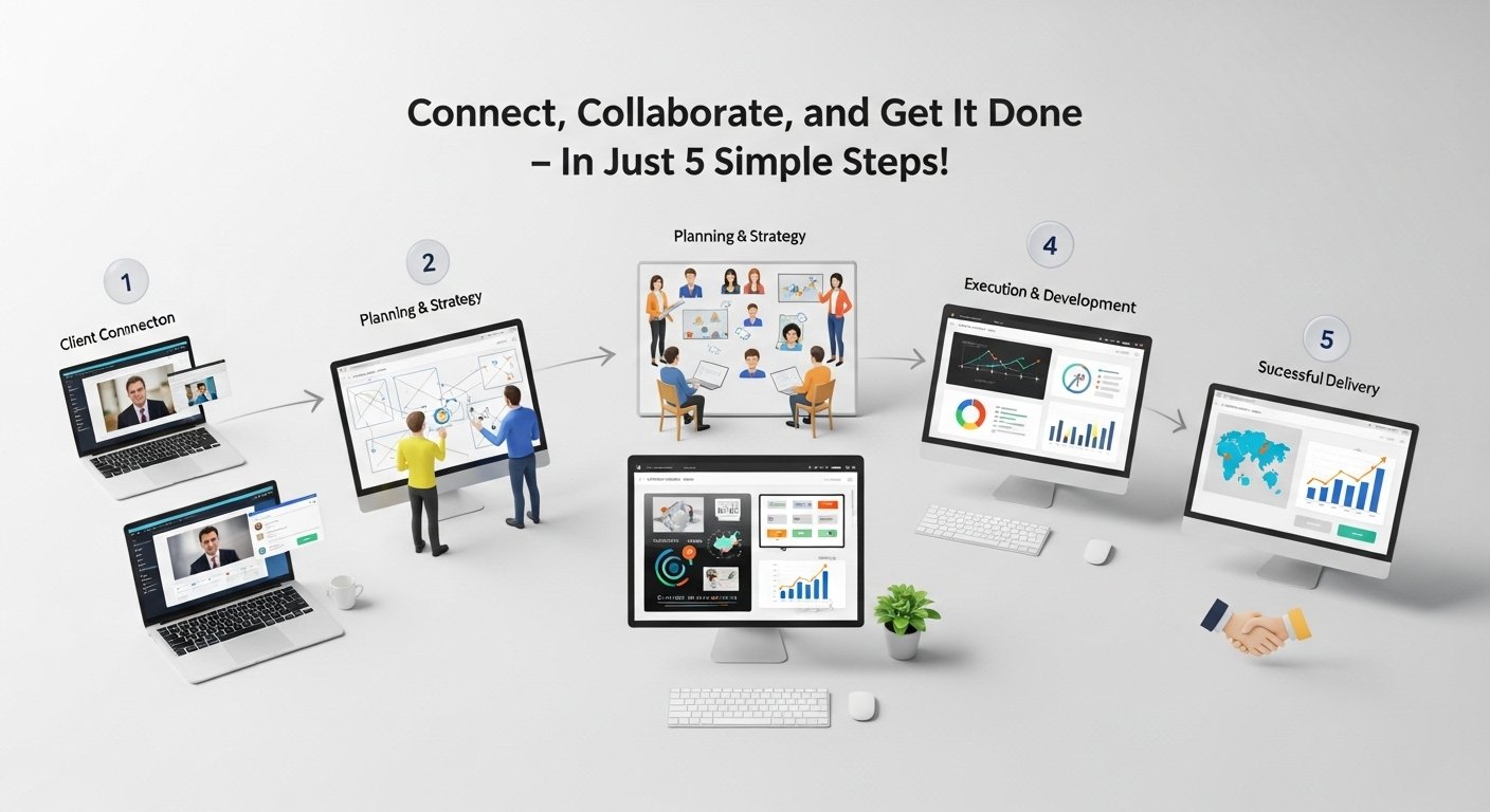 Getting started with us is simple and seamless. Share your requirements, collaborate with our expert team, and watch your project move from concept to completion in just 5 straightforward steps. Quick, transparent, and designed to deliver results.